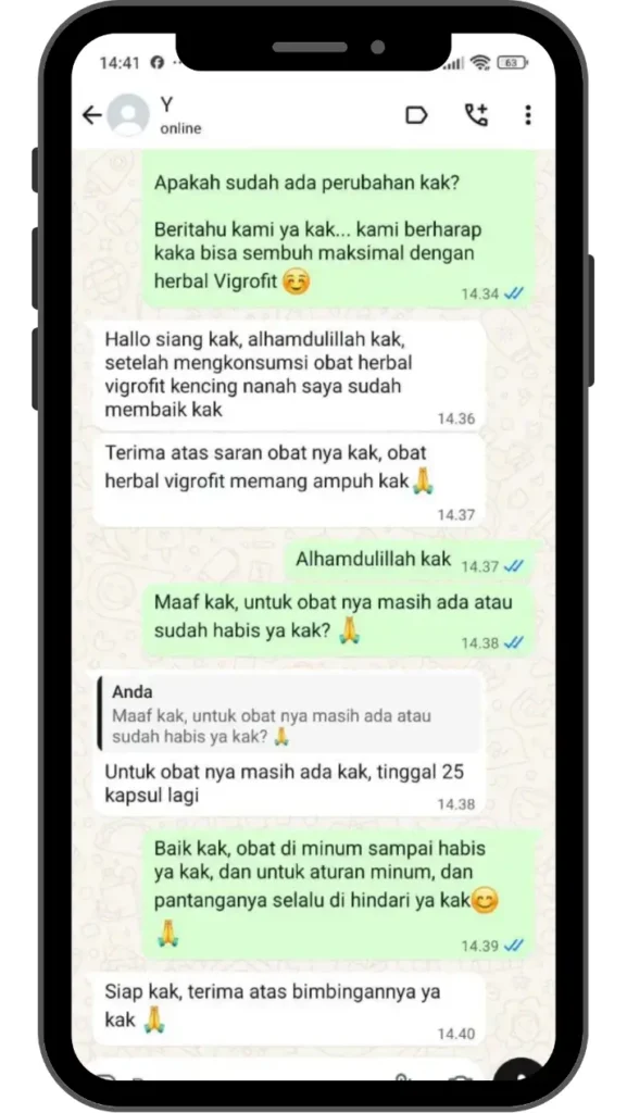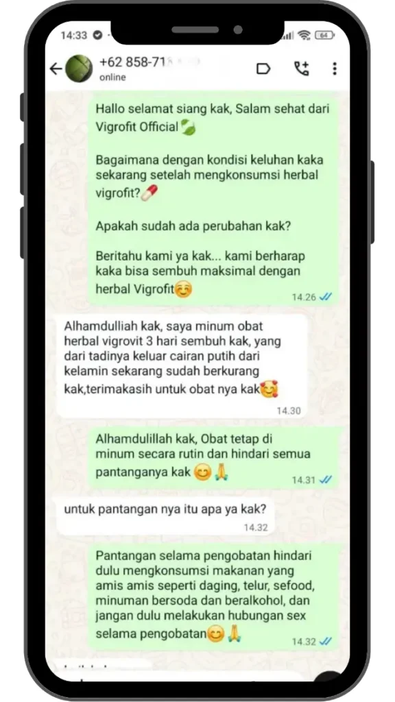 “Testimoni nyata dari para customer kami membuktikan bahwa obat kemaluan keluar nanah Vigrofit benar-benar ampuh mengobati penyakit kencing keluar nanah. Mereka telah merasakan perubahan positif hanya dalam 3 hari pemakaian. Kini giliran Anda yang merasakan manfaatnya!”