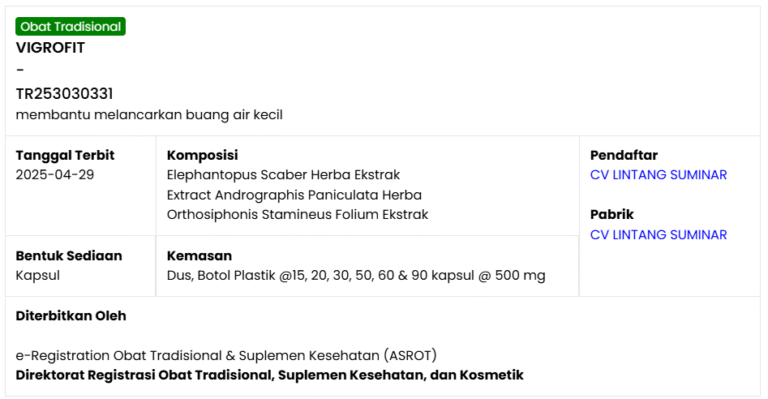 Diformulasikan dari 100% ekstrak herbal berkualitas tinggi, obat keputihan tradisional ini memiliki konsentrasi bahan aktif 13x lebih tinggi, membuatnya sangat efektif dan cepat sembuhkan serta mengobati keputihan, termasuk mengatasi keputihan gatal yang mengganggu. Obat keputihan Vigrofit telah lolos uji BPOM dan bersertifikat Halal, sehingga sangat aman untuk: